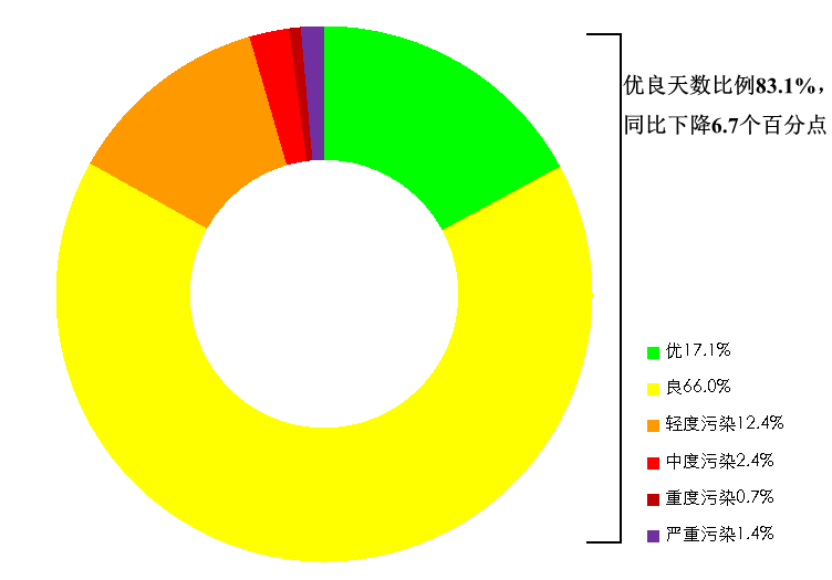 4月,全國339個地級及以上城市平均空氣質量優(yōu)良天數(shù)比例為83.1%,同比下降6.7個百分點;平均重度及以上污染天數(shù)比例為2.1%,同比上升0.9個百分點。由沙塵天氣導致的平均超標天數(shù)比例為9.7%,其中重度及以上污染天數(shù)比例為2.1%。