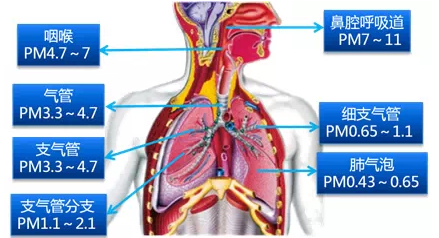 它不易被阻擋,被吸入人體后會(huì)直接進(jìn)入支氣管,沉積肺部,甚至可以進(jìn)入肺泡、血液。在肺部沉積率高的是粒徑為1微米左右的顆粒物。這些顆粒物在肺泡上沉積下來,損傷肺泡和粘膜,引起肺組織的慢性纖維化,導(dǎo)致肺心病、加重哮喘病、引起慢性鼻咽炎、慢性支氣管炎和心血管病等方面的疾病,嚴(yán)重的可危及生命,對兒童和老年人的危害尤為明顯。