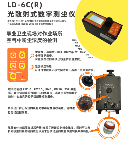 北京綠林環(huán)創(chuàng)科技有限公司的LD-6C(R)防爆型數(shù)字測塵儀采用光散射法,并配有濕度修正功能,可以滿足各種監(jiān)測環(huán)境的需要。LD-6C(R)防爆型數(shù)字測塵儀具有CPA,CMA等多個資質(zhì),并可配合客戶委托第三方省級計量院來檢定產(chǎn)品獲取檢定證書。