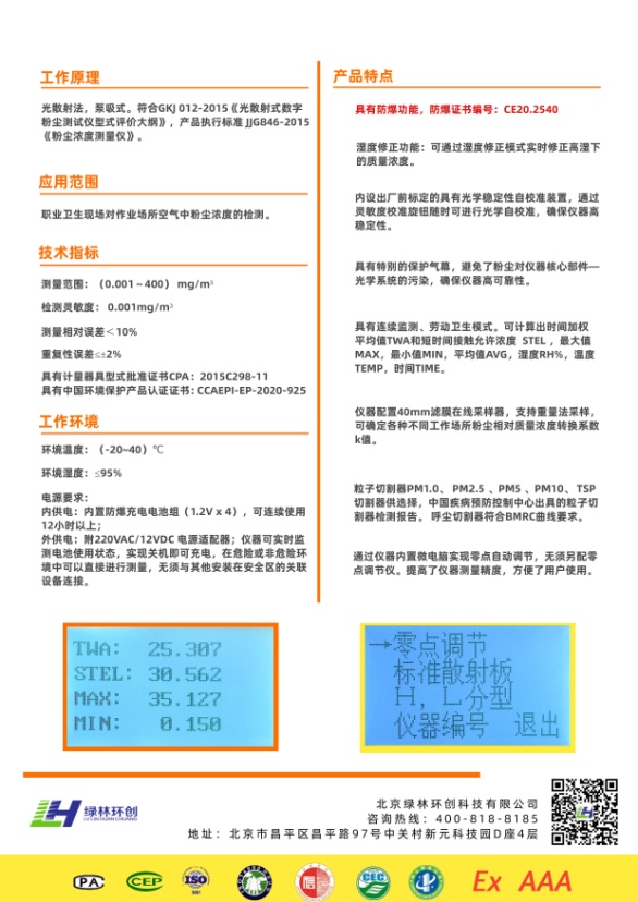 北京綠林環(huán)創(chuàng)科技有限公司是一家取得了北京市質(zhì)量技術(shù)監(jiān)督局頒發(fā)的“中華人民共和國計量器具型式批準(zhǔn)證書”和“中華人民共和國制造計量器具許可證”的行業(yè)資深的老牌粉塵儀生產(chǎn)廠家,將竭誠為您提供最專業(yè)的解答。如有任何問題,可撥打400-818-8185進行咨詢。
